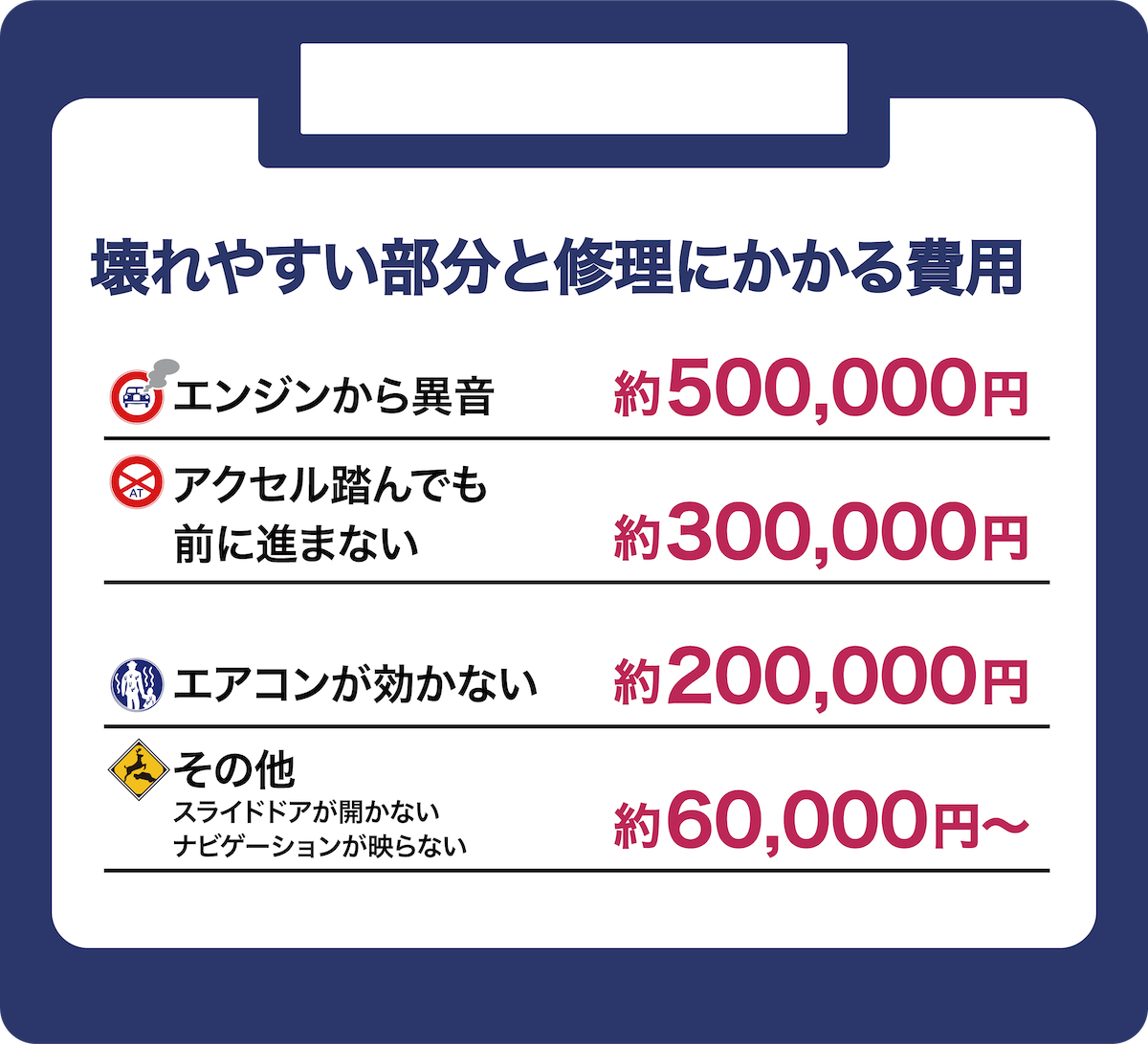 エンジン、パワステ、エアコンなどほとんどの故障をカバー!